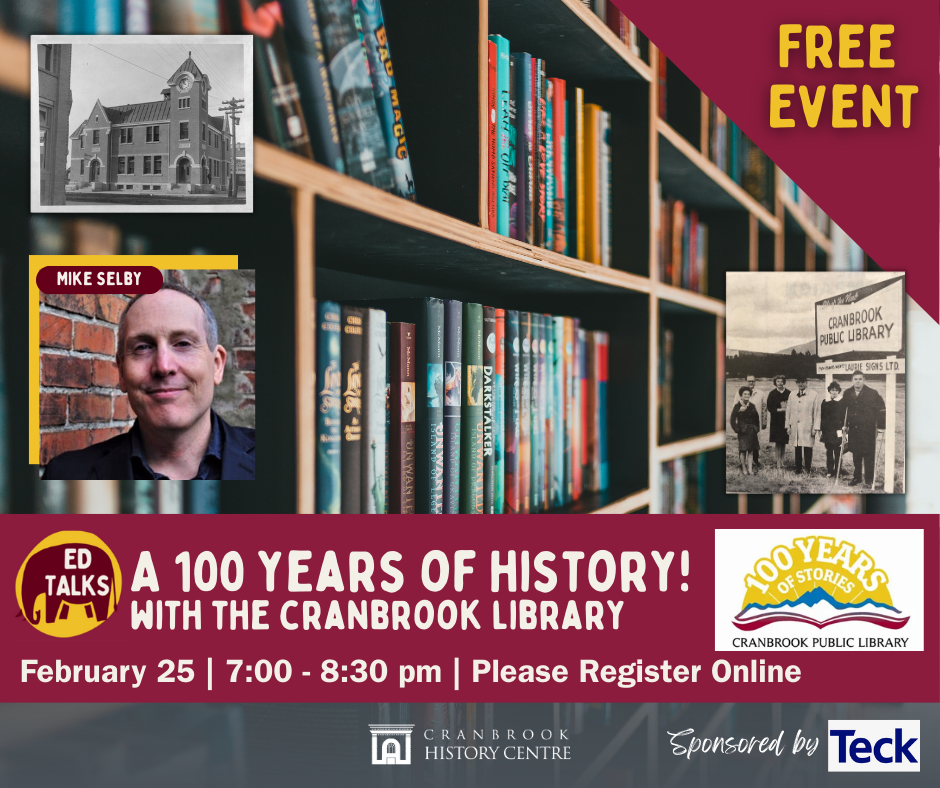 In 1912, a visitor to Cranbrook felt “something is wrong with the people.” He lamented “In all my travels over British Columbia…Cranbrook is the only city of importance which I have visited in which there is no public library.” This was not the first nor the last complaint of this nature. Every since the railway’s arrival in 1898, the growing population wondered why Cranbrook was a town without books. Mike Selby will tell the fascinating story of Cranbrook’s struggle to obtain a public library, and how it kept it open for a full century. The story of the Cranbrook Public Library is the story of Cranbrook itself.